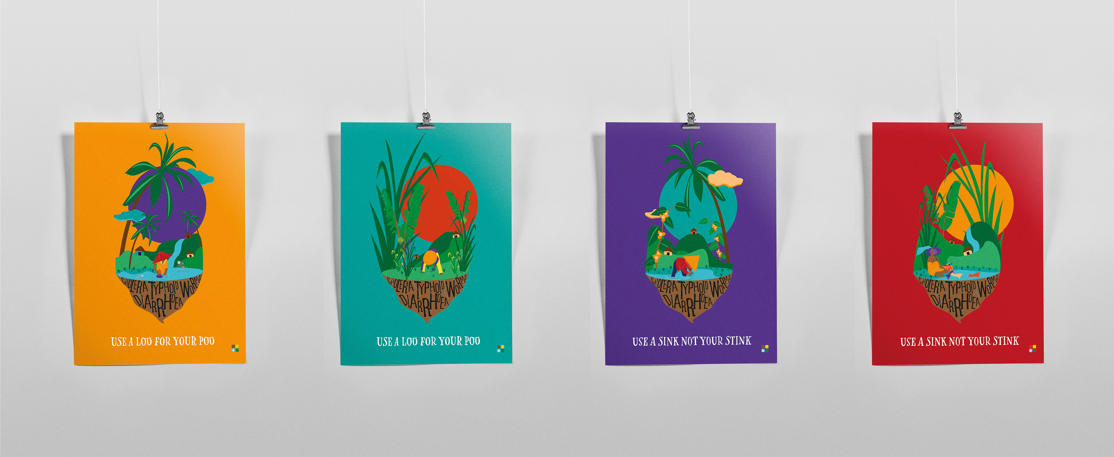 These posters represent sustainable development goal 6 which targets clean water ad sanitation in specifics to the ODA listed country, Cambodia. The posters reference traditional aspects of Cambodia in order to entice the audience into understanding it's specifically about them. It targets the daily activities that have become second nature that create and overall poor quality of life.